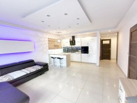 Przestrzenny salon typu open space połączony z kuchnią , sypialnia z łóżkiem double bed , łazienka z toaletą , wanna. W przedpokoju przestrzenna szafa. Mieszkanie wyposażone w sprzęt AGD i w pełni umeblowane.